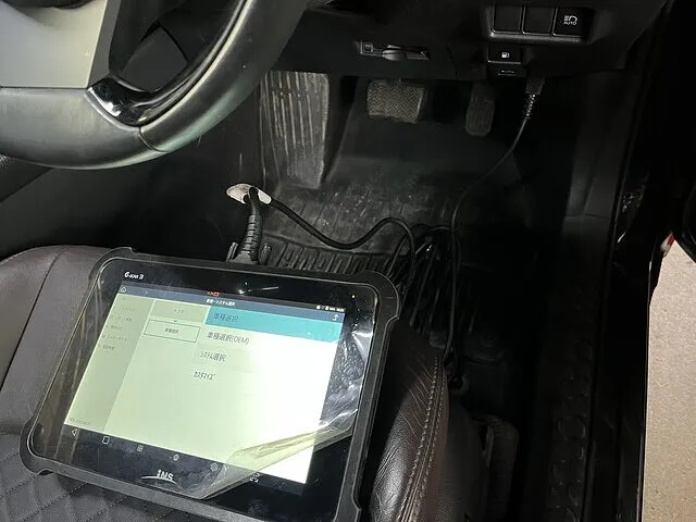 2柱リフトでは、セルフチェックではなかなか目の届かない足回りまでしっかりチェックすることが可能。業務の効率化のためにも効果を発揮し、スムーズな作業を実現しております。