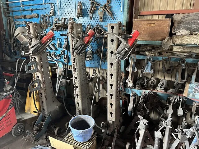 フレーム修正機とは、事故等で大きな衝撃を受けたことにより車体の寸法に狂いが生じたり、車のフレーム部分に損傷を受けた車に対して修復を行う機械。より精度の高い修理が可能になります。